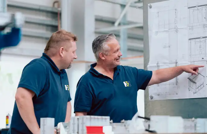 - Made in Germany steht bei uns für kontrollierte Prozesse, kurze Wege und gleichbleibende Qualität – von der Konstruktion bis zur Auslieferung.
